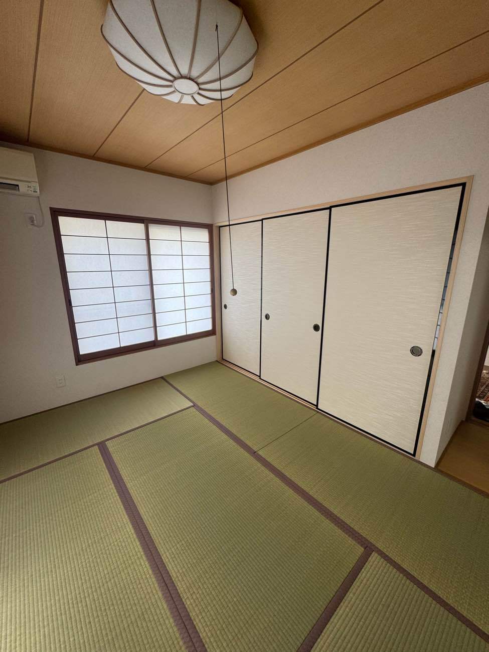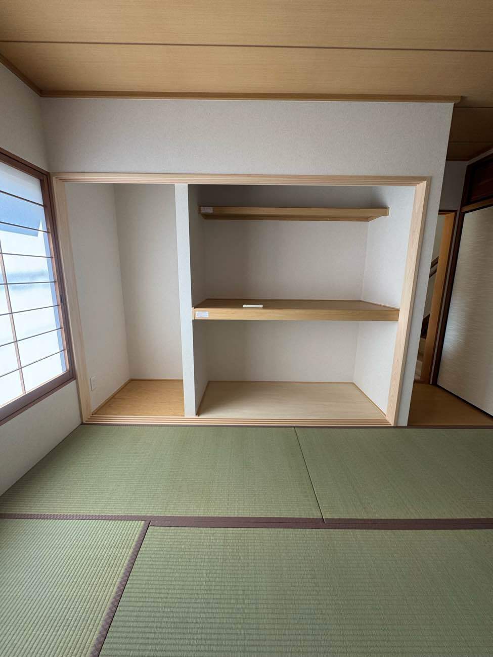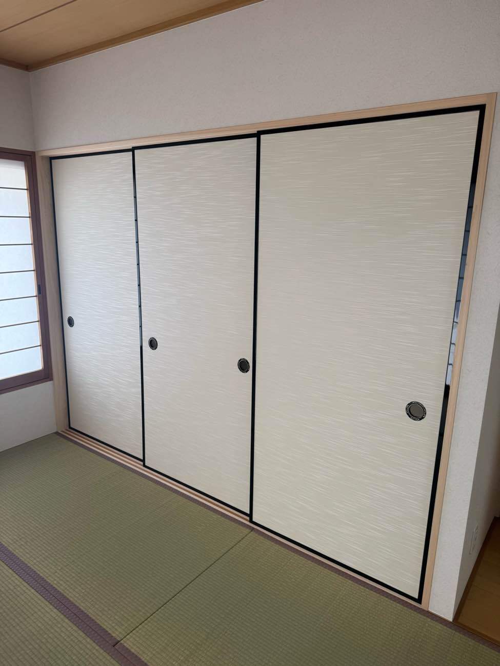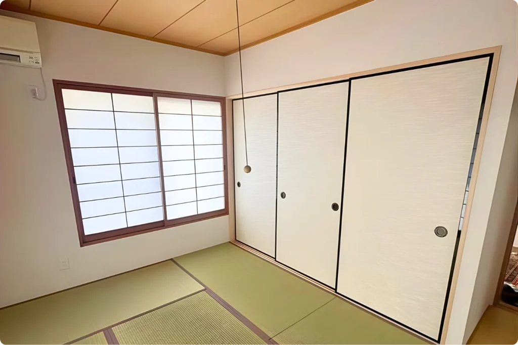 畳は日に焼けてしまっていたため、熊本県産の良質ない草で表替えを行い、足ざわりも香りも格段に心地よくなりました。また、既存の襖に似たデザインを選ばれたことで一体感が生まれ、仕上がりはまるで高級旅館のような落ち着きのある空間に。