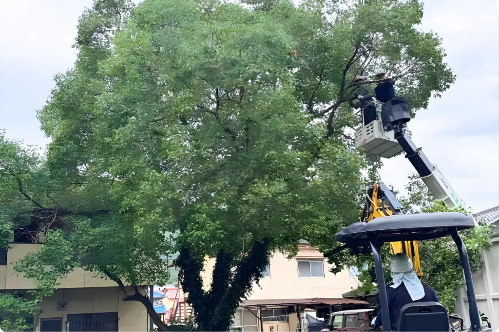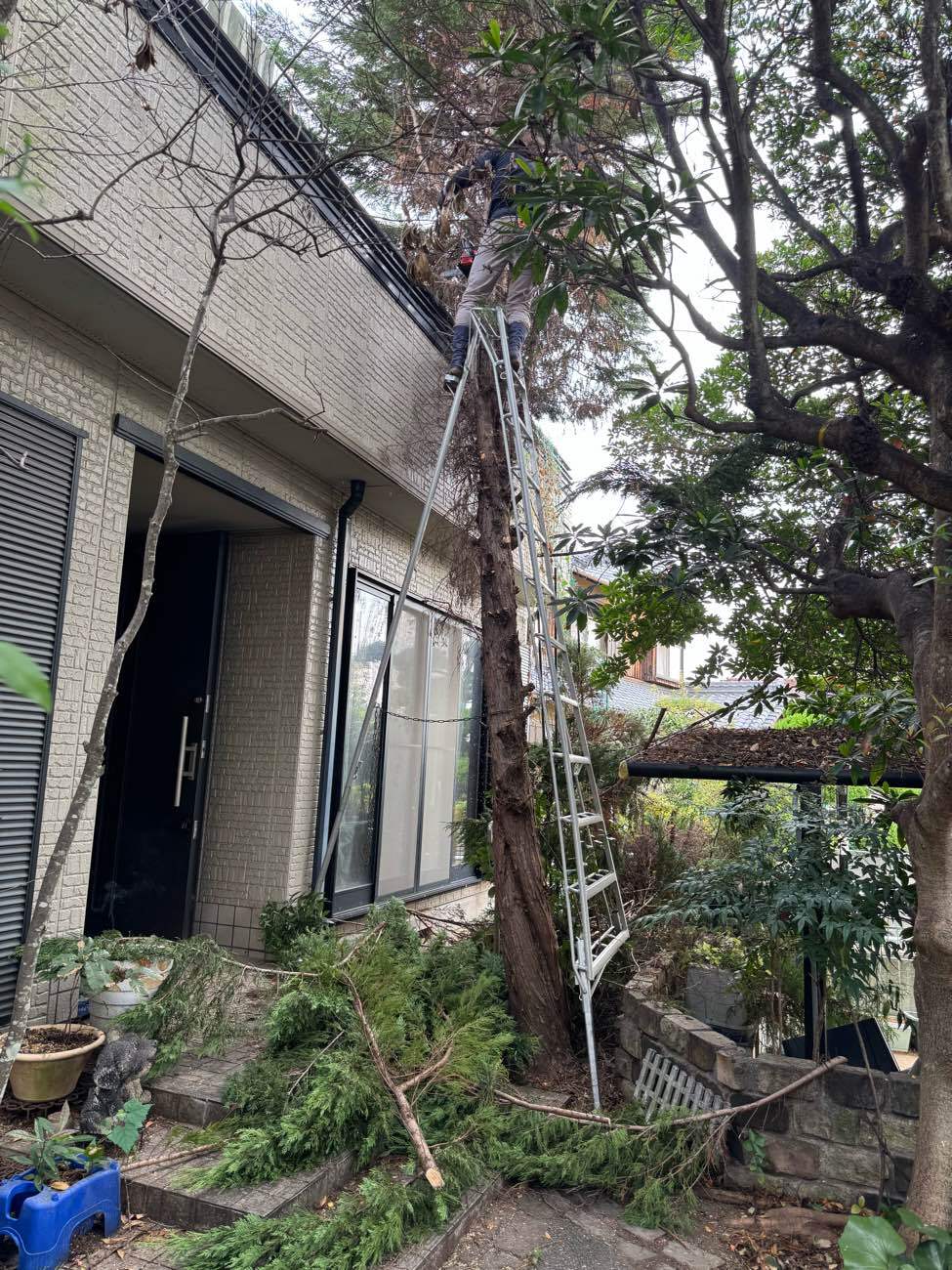 今回のお客様は、外壁にもたれかかるほど大きくなった庭木にお悩みでした。風が強い日には外壁への負担が気になり、日当たりが遮られることも心配です。