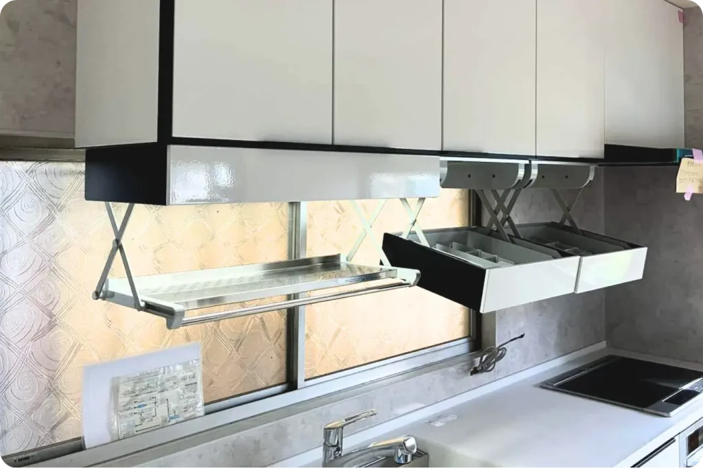 最終的に採用されたTAKARAの「レミュー」は、引き出し内部までホーロー素材で、汚れや洗剤にも強く、お手入れが簡単。下ごしらえ・加熱・盛り付けの動線が整理された設計により、無駄な動きを減らした“家事らくキッチン”です。アイラックやアイラック水切りも、必要な時だけ使える仕様で、使い勝手へのこだわりが随所に感じられます。
