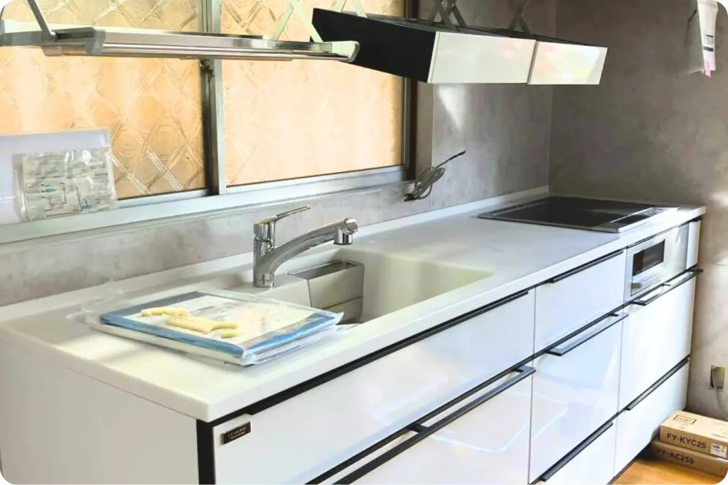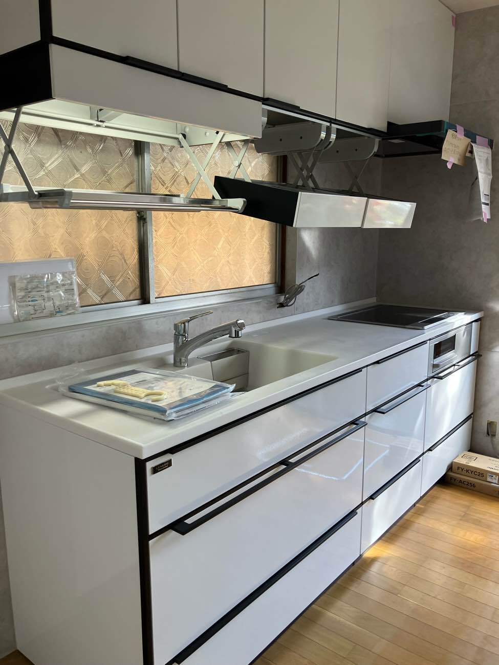 複数のショールームを見学し、調理・収納・片付けのすべてに納得できるキッチンとして選ばれたのが、TAKARAの「レミュー」。作業動線を考えたエリア分けと、ホーロー素材ならではのお手入れのしやすさで、日々の家事が快適になる空間に仕上がりました。また、吊り戸を撤去してクロスを貼り替えたことで、キッチンまわりはすっきりと広がりを感じられる印象に。あわせて玄関ドアや浴室も整え、住まい全体の心地よさを高めています。