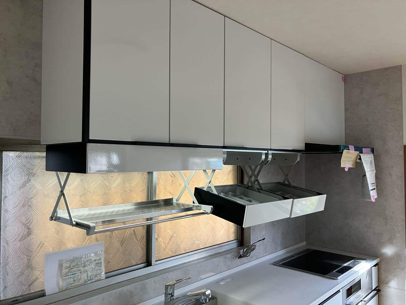 また、吊り戸を撤去してクロスを貼り替えたことで、キッチンまわりはすっきりと広がりを感じられる印象に。あわせて玄関ドアや浴室も整え、住まい全体の心地よさを高めています。