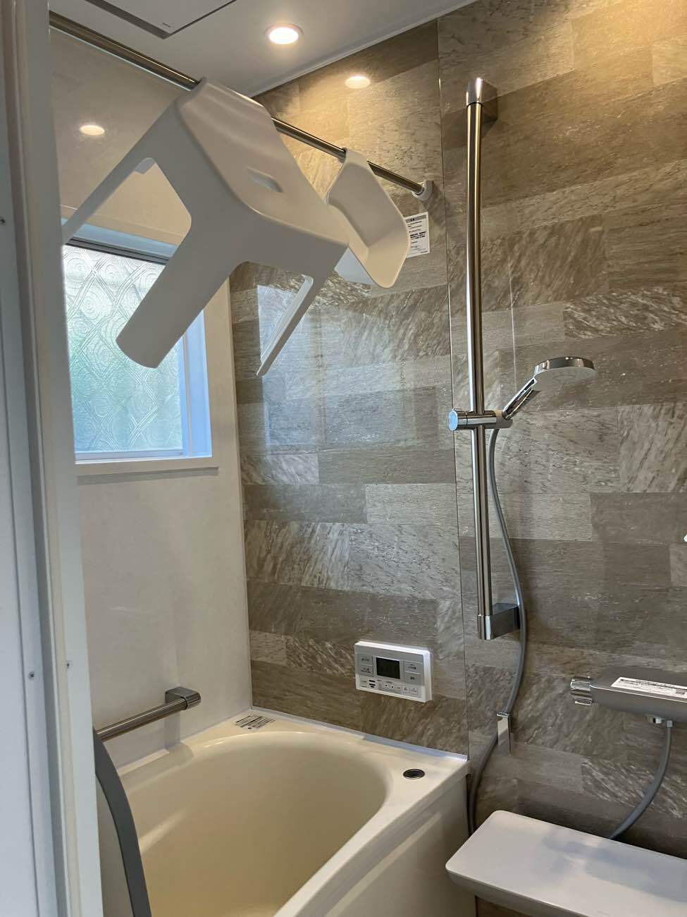 さらに、実は一番最初にご依頼いただいていたのが浴室交換工事。水漏れをきっかけに配管を見直し、在来工法の冷たいタイル浴室から、TOTOサザナのユニットバスへ。寒い季節ほど、その快適さを実感していただける仕上がりとなりました。