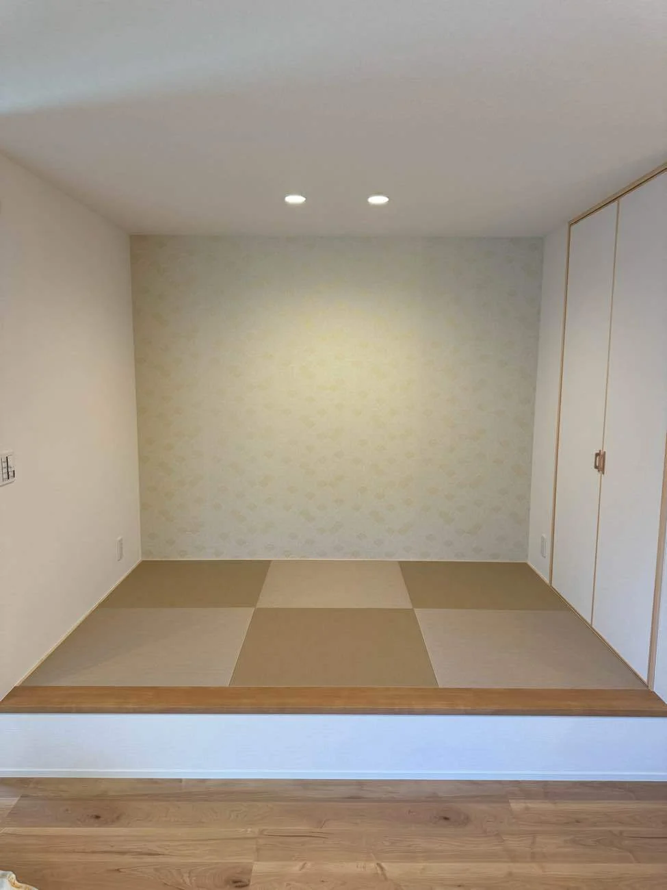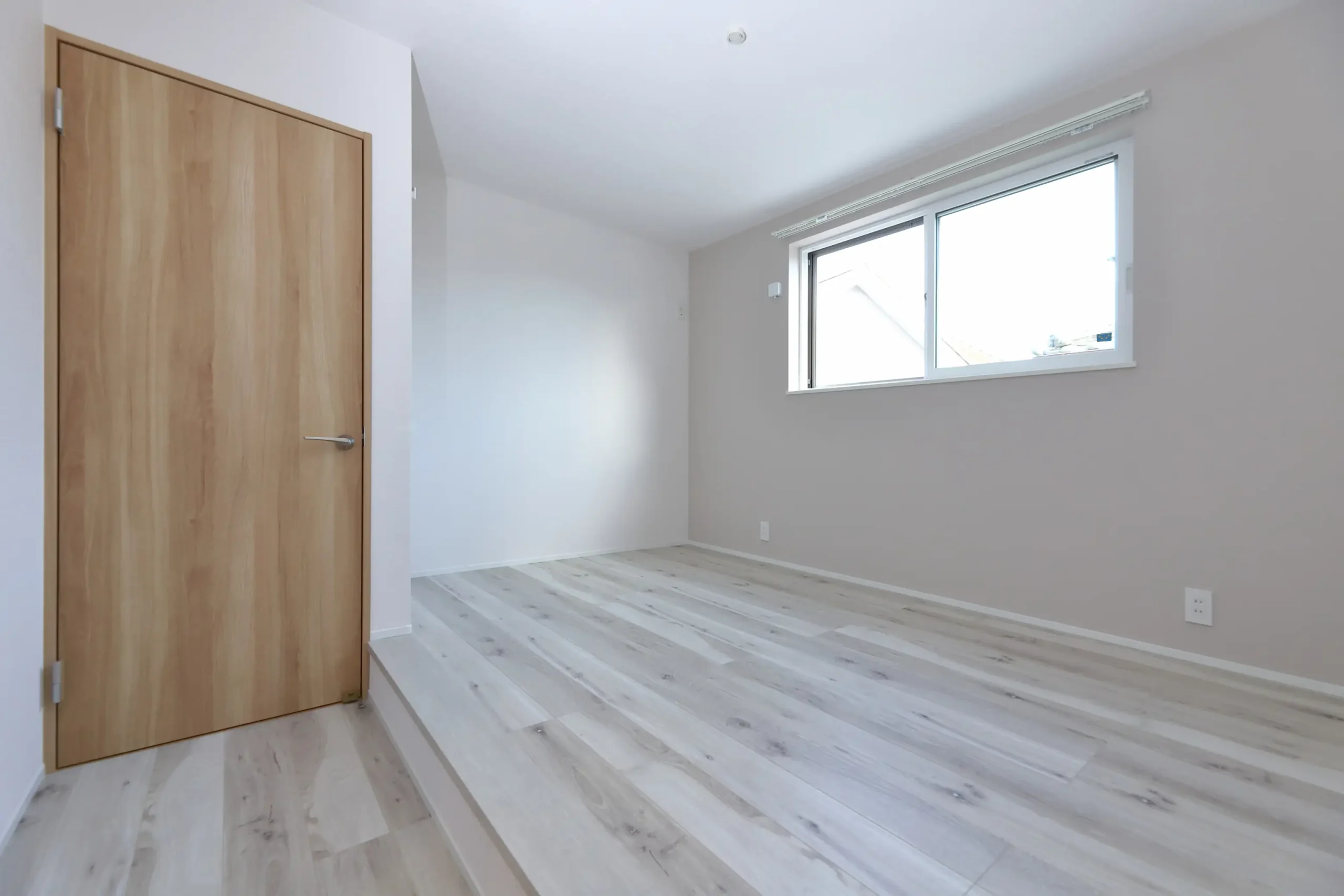2階には小上がりの寝室とファミリークローゼット、将来を見据えた洋室を配置。収納をしっかり確保しながら、各部屋を広々と使える設計としました。