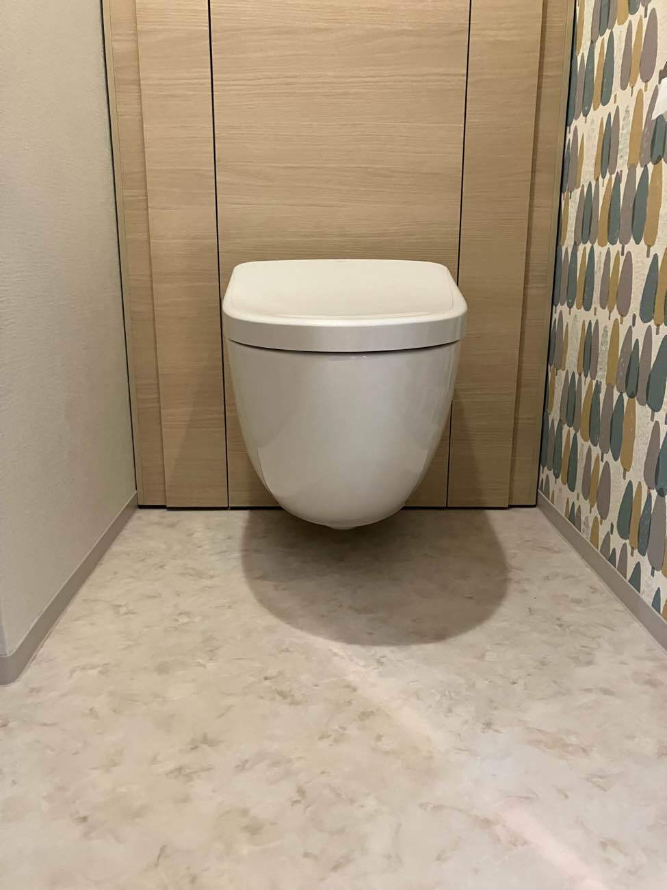 完成したトイレは、浮いていることで見た目がすっきりし、日々のお掃除もぐっと楽に。