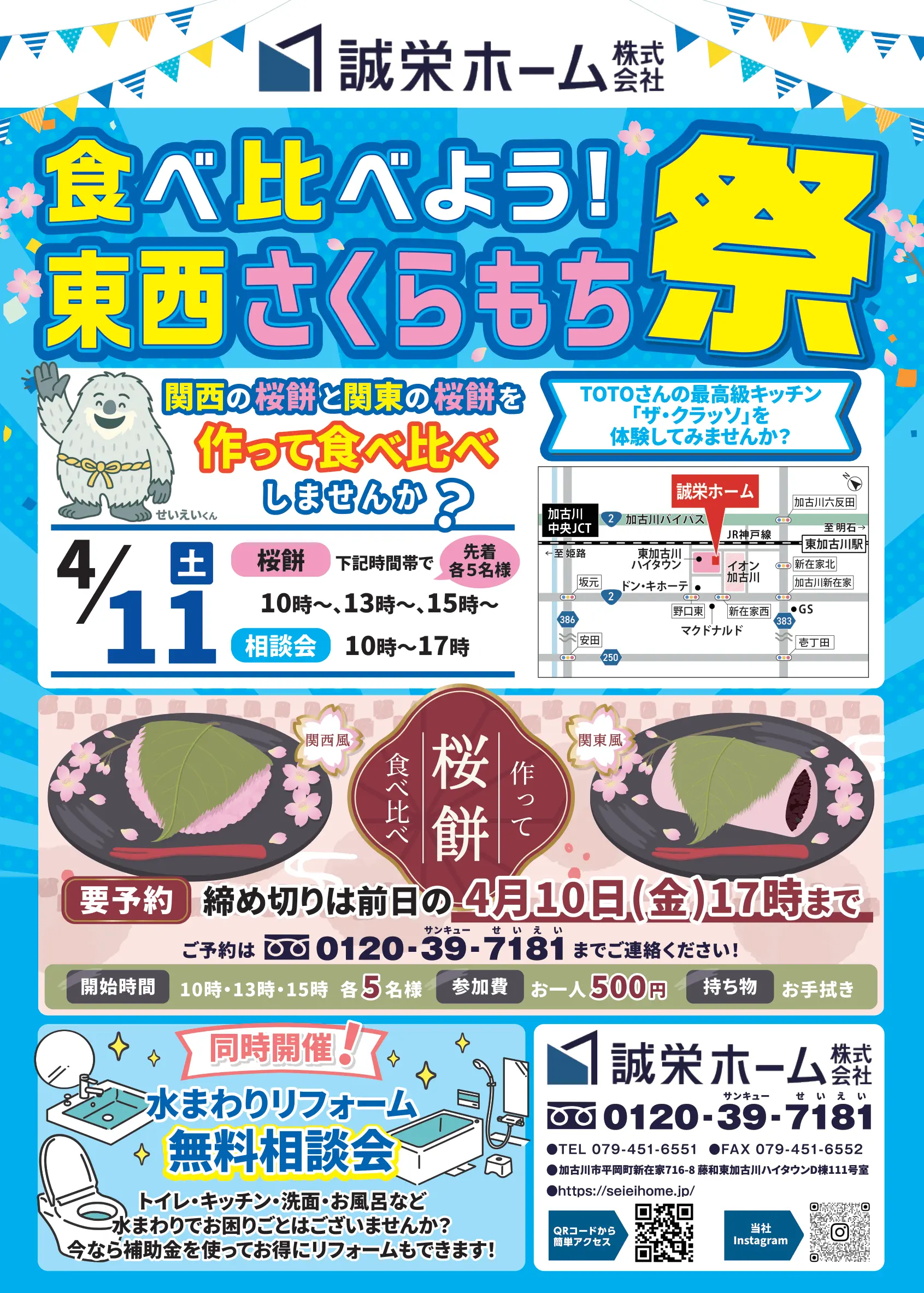 このたび誠栄ホームでは、春の特別イベント 「食べ比べよう!東西さくらもち祭」 を開催いたします。